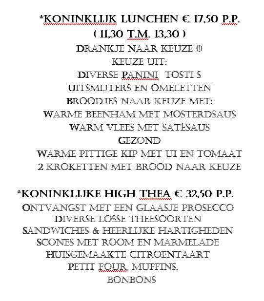 Daarnaast hebben wij ook arrangementen met ’t Hoedje van de Koningin.